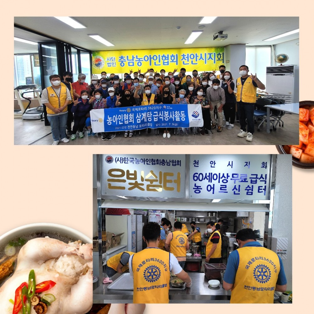 [2021.07.09 국제 로타리 3620지구의 천안 동남 로타리클럽 초복맞이 삼계탕 후원]동남로타리클럽에서 농어르신과 회원을 위해 초복을 맞이하여