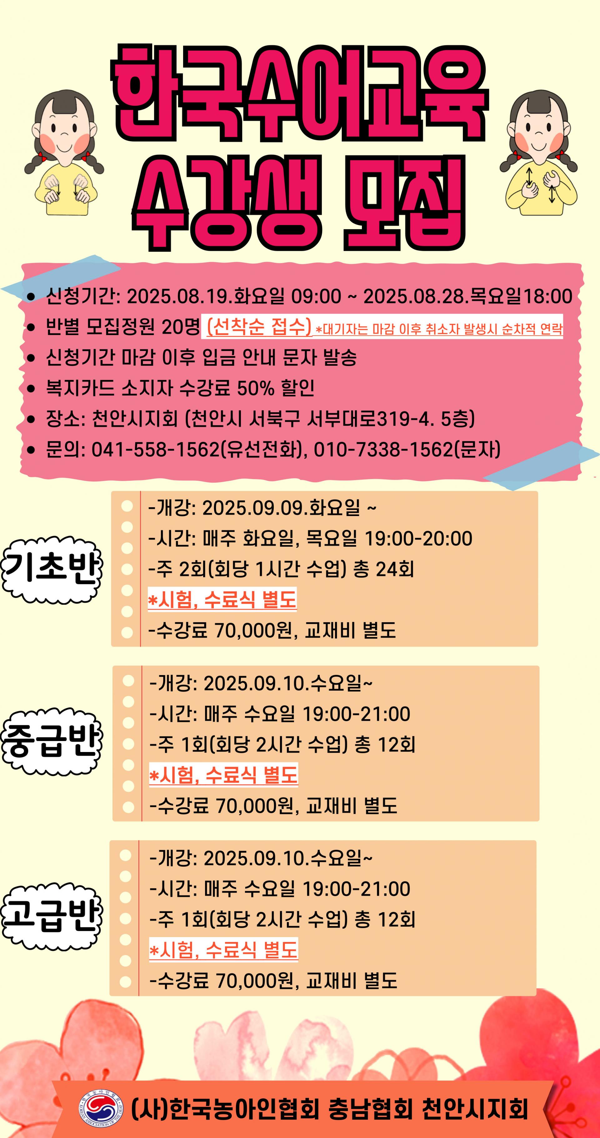 2025년 9월 한국수어교육 수강생을 모집합니다!